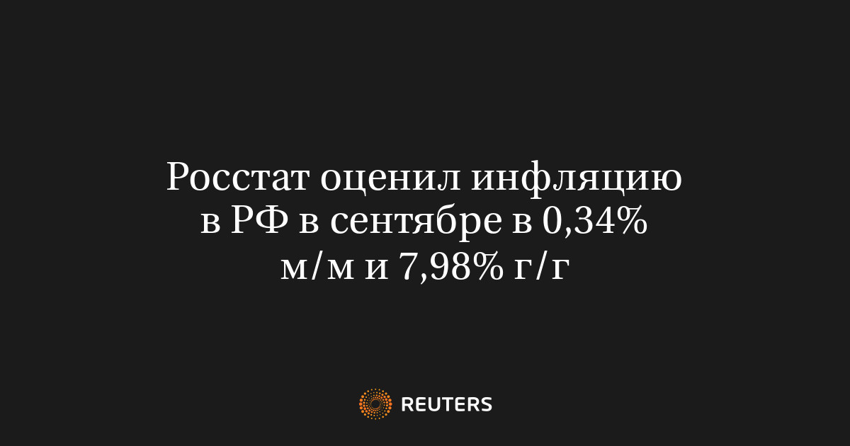 Росстат оценил инфляцию в РФ в сентябре в 0,34% м/м и 7,98% г/г