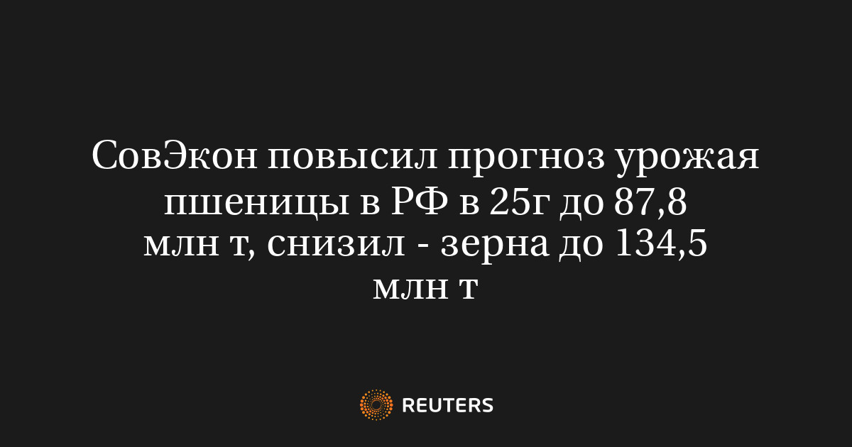 СовЭкон повысил прогноз урожая пшеницы в РФ в 25г до 87,8 млн т, снизил - зерна до 134,5 млн т