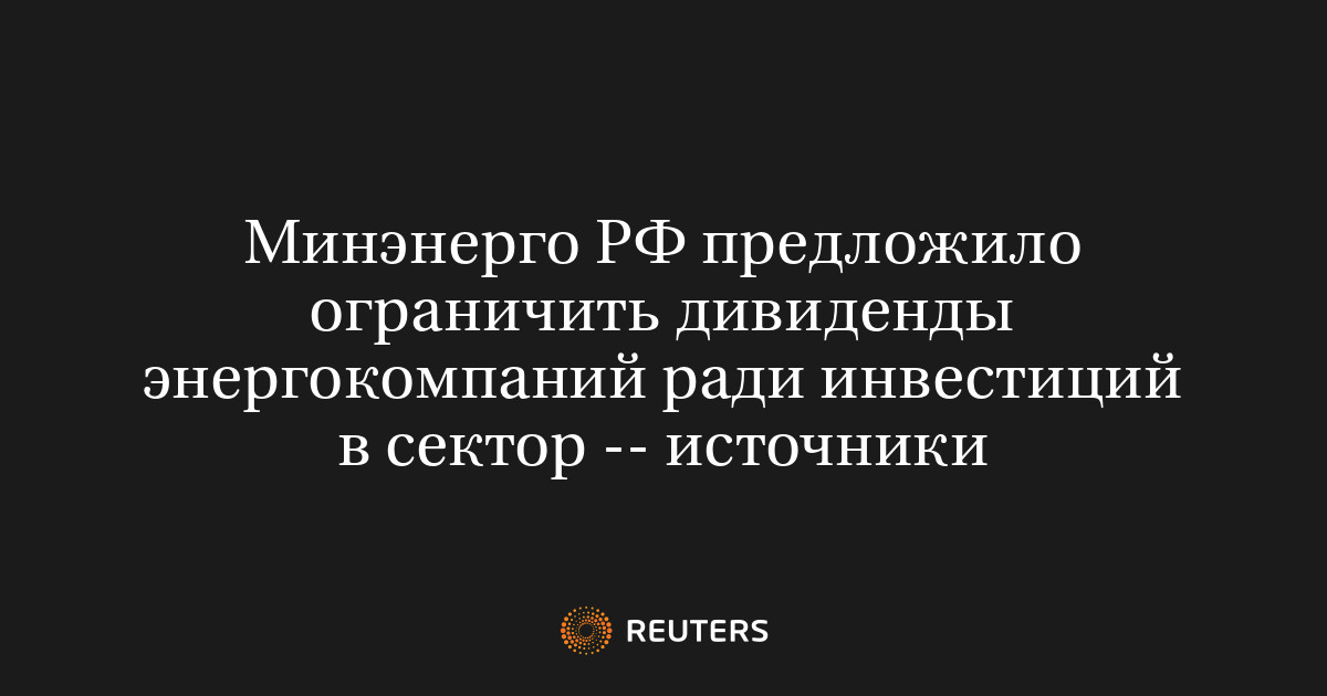 Минэнерго РФ предложило ограничить дивиденды энергокомпаний ради инвестиций в сектор -- источники