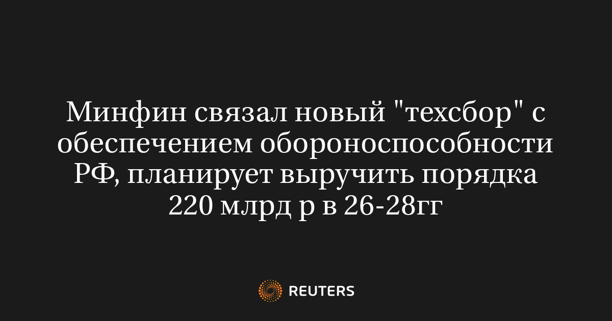 Минфин связал новый "техсбор" с обеспечением обороноспособности РФ, планирует выручить порядка 220 млрд р в 26-28гг